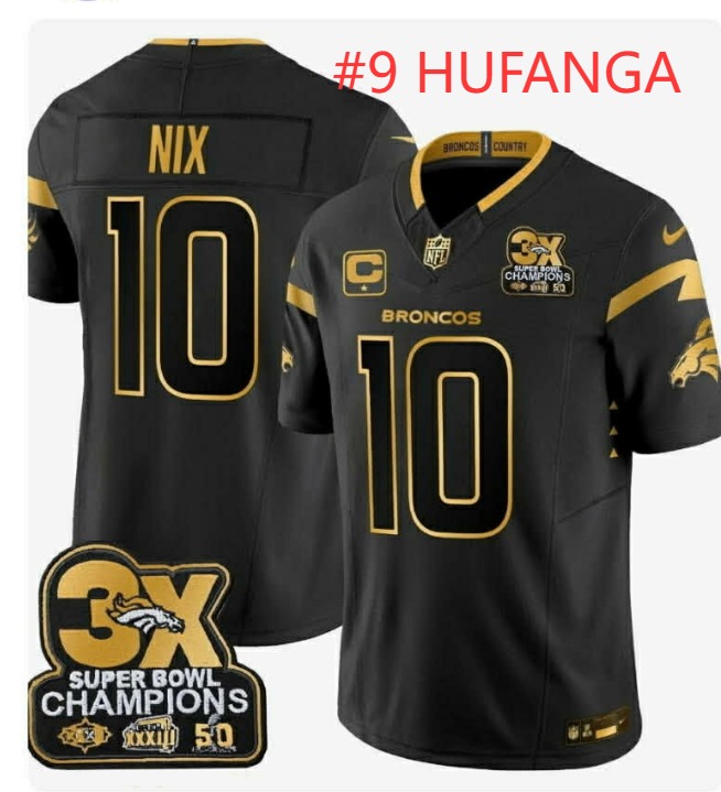 - Denver Broncos #9 HUFANGA Gold Black Stitched Jersey