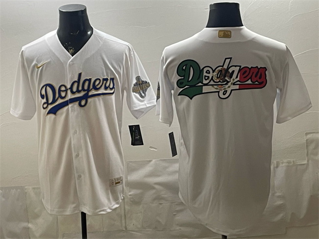- Men Los Angeles Dodgers Team Big Logo White Cool Base Stitched Baseball Jersey 1