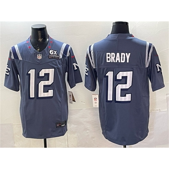 Men New England Patriots 12 Tom Brady Storm Blue 2025 F U S E With 6x Super Bowl Champions Patch Rivalries Vapor Limited Stitched Football Jersey