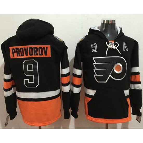 - Men Philadelphia Flyers 9 Ivan Provorov Black Sawyer Hooded Sweatshirt Stitched NHL Jersey