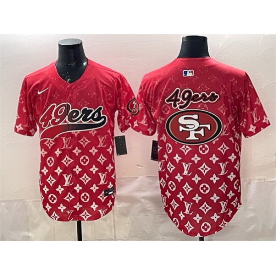 - Men San Francisco 49ers Team Big Logo Red Cool Base Stitched Baseball Jersey