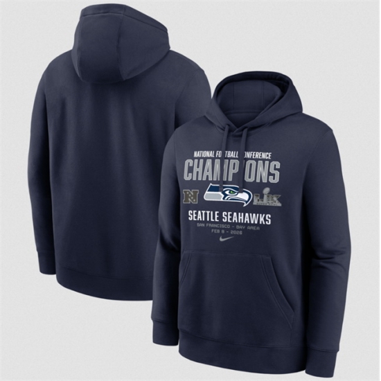 - Men Seattle Seahawks Navy 2025 NFL Champions Pullover Hoodie