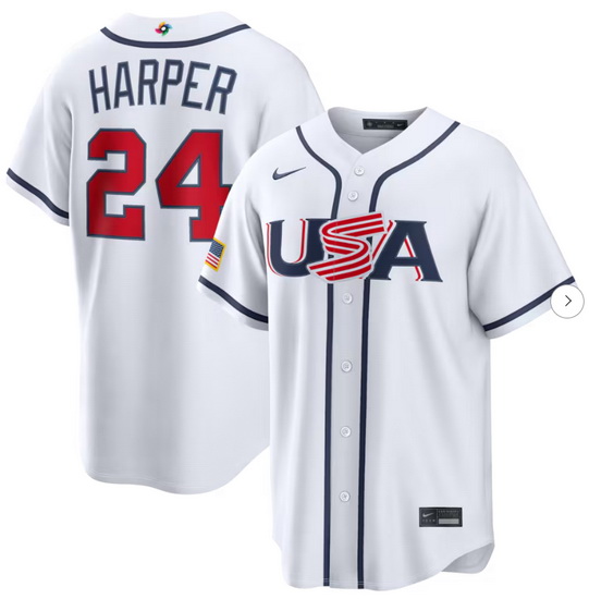 - Men USA Baseball 3 Bryce Harper White World Baseball Classic Stitched Jersey
