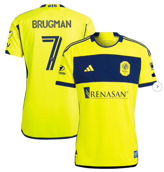 - Mens Nashville SC Gastón Brugman adidas Yellow 2024 The 615 Kit Authentic Player Jersey