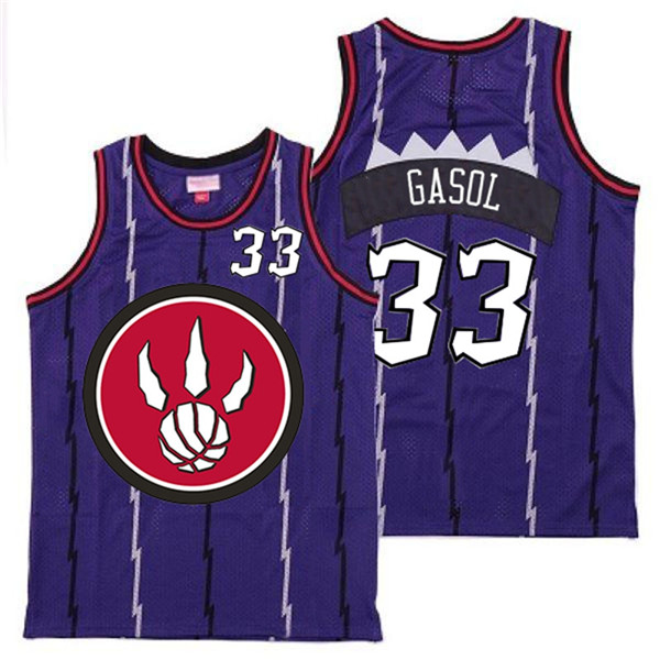 - Raptors 9 Serge Ibaka Purple Big Gray TR Logo Retro Jersey