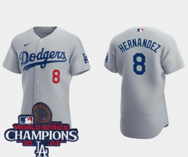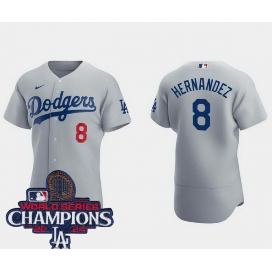 Women Nike Los Angeles Dodgers Enrique Hernandez #8 Gray Flex Base 2024 World Series Champions Stitched MLB Jersey