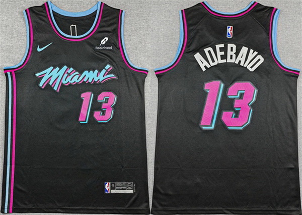 - Men Miami Heat 13 Bam Adebayo Black 2025 26 City Edition Stitched Basketball Jersey
