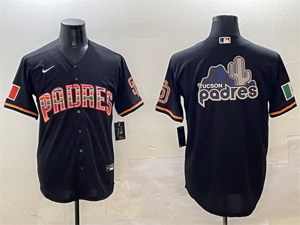 - Men San Diego Padres Black Team Big Logo Cool Base Stitched Baseball JerseyS 1