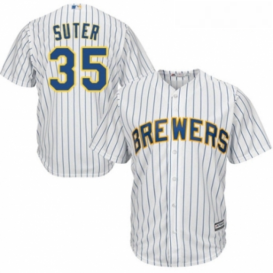 - Youth Majestic Milwaukee Brewers 35 Brent Suter Replica White Home Cool Base MLB Jersey